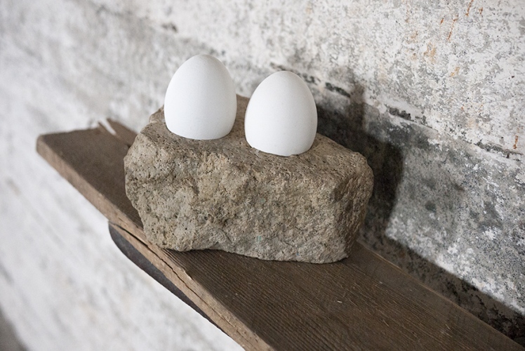 During a workshop the sick artist spent time in a tiny house sitting in the kitchen and staring at a photograph while swallowing tons of garlic and ginger, abusing candle holders and stumbling upon magical stonesnow-formations revealing the égg-ness of all things.